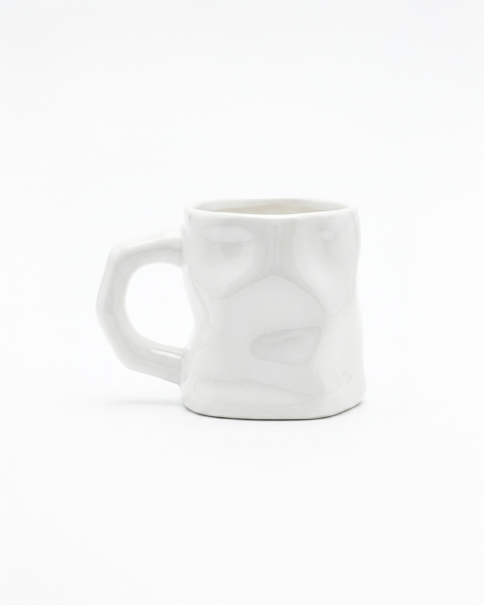 the crushed illusion | irregular ceramic mug | white